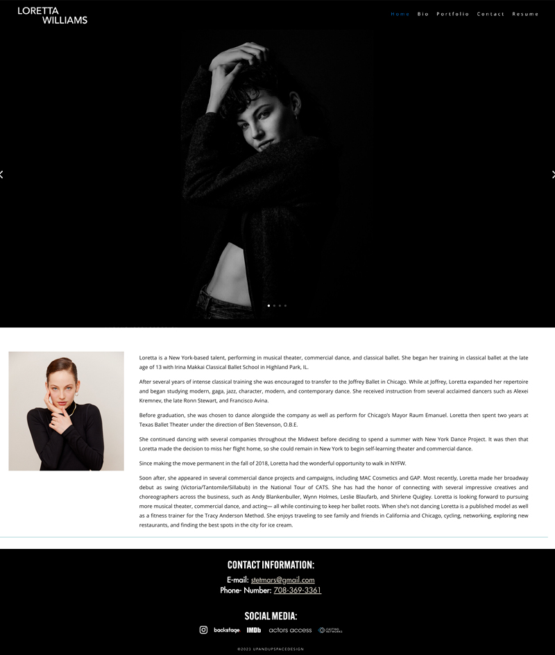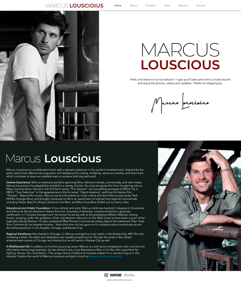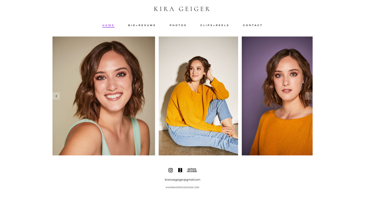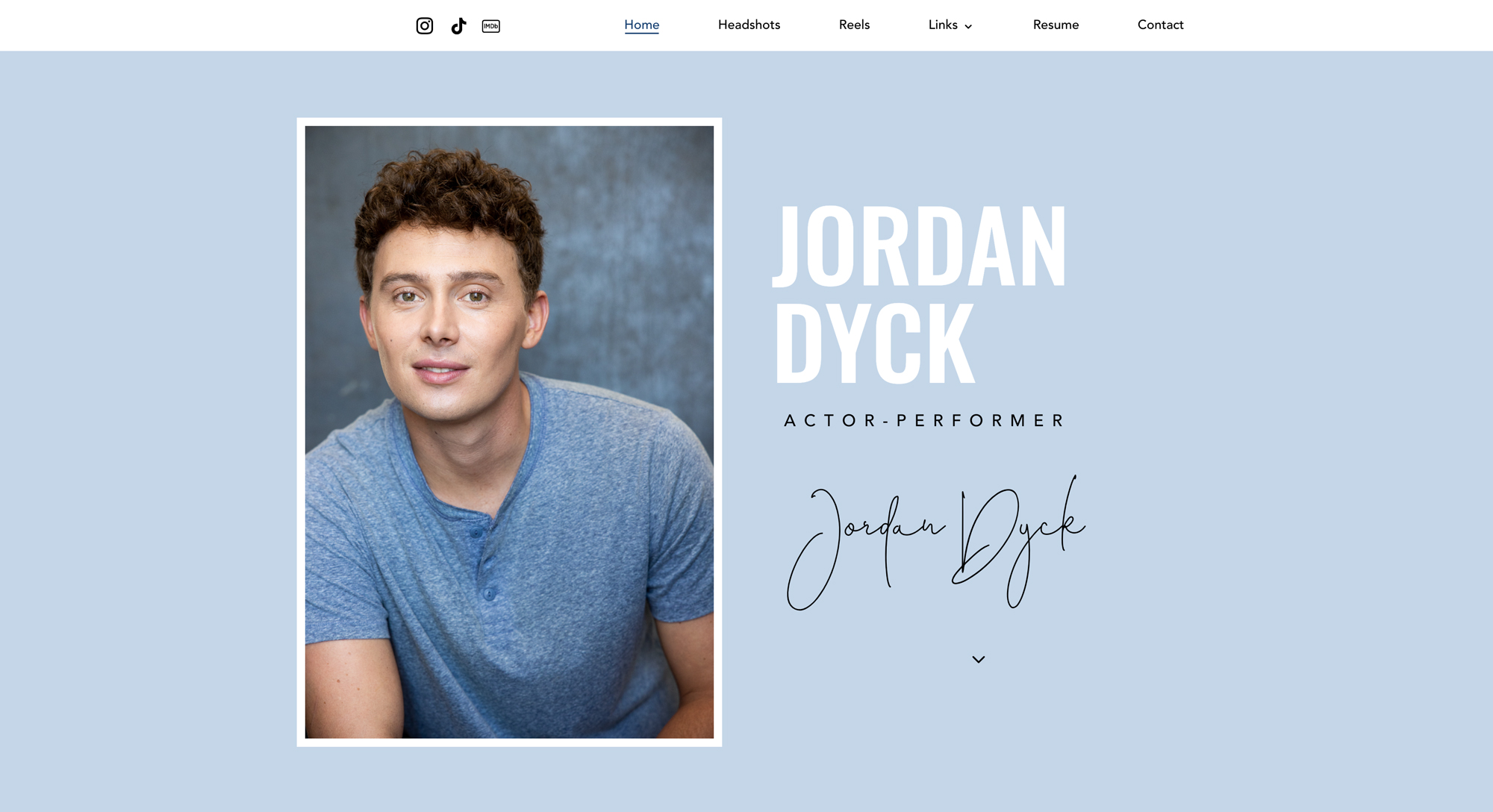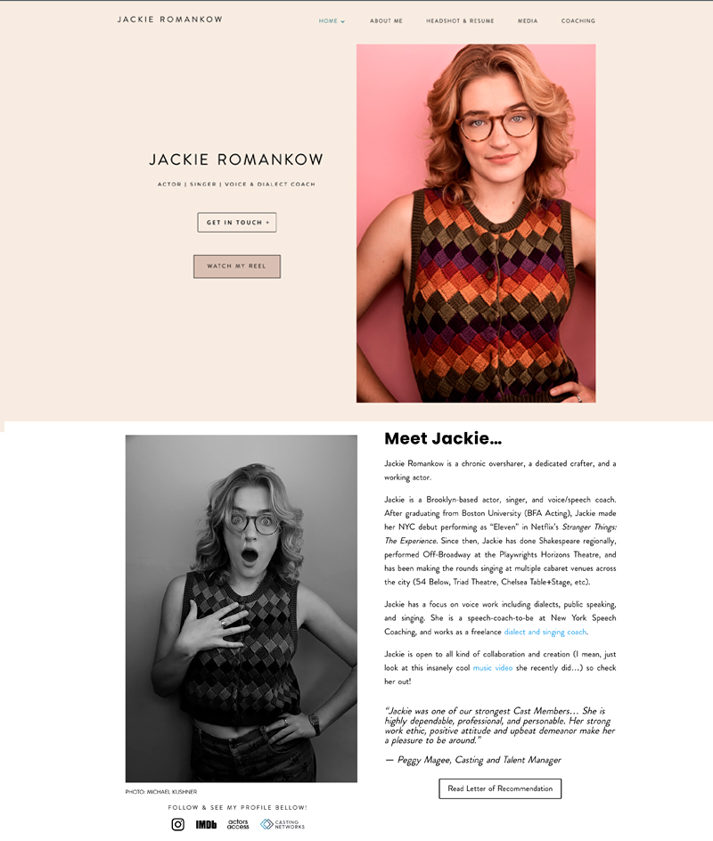 It is up to you! We can use any of our actor websites as your template. You can also use one of our actor sites as inspiration, and share your vision for what you want your website to look like so we can bring it to life. Our intuitive actor web design form allows for notes on all of this to inform your personal designer as your site is being built.